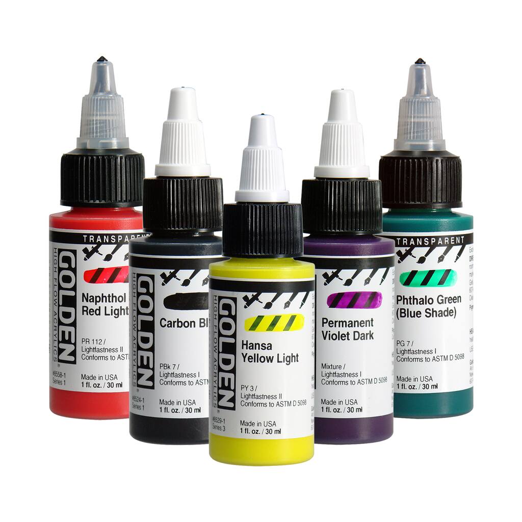 3 COLOR LINES GOLDEN Airbrush Colors 129 GOLDEN Acrylics 129 GOLDEN Fluid Acrylics 129 GOLDEN High Flow Acrylics 129. 04112019 188 Bell Road Phone. Golden High Flow Acrylics come in dropped bottles with twist to open tops.